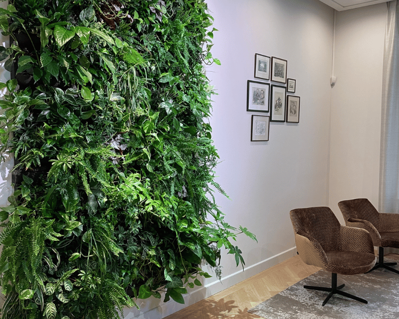 Een plantenwand brengt leven en welzijn in elke omgeving. Van woonkamer tot entree: een verticale tuin geeft sfeer, verbetert akoestiek en zuivert de lucht. Compact in ruimte, groots in uitstraling.