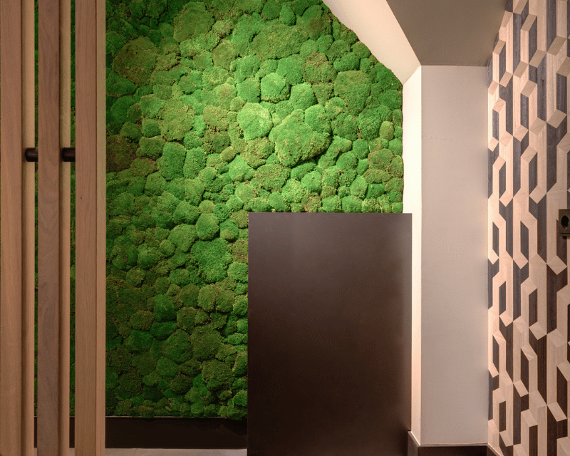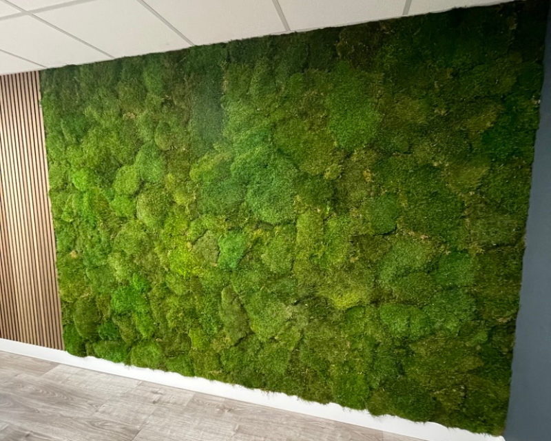 Een moswand brengt de natuur naar binnen en zorgt direct voor een kalme, serene sfeer in de ruimte. Mos verbeteret de akoestiek aanzienlijk, geluiden worden gedempt door het mos. Een ruimte met mos voelt daarom nog aangenamer. Mos heeft dus naast belangrijke estetische dus ook functionele voordelen. Ideaal voor een onderhoudsarme rustgevende ruimte.