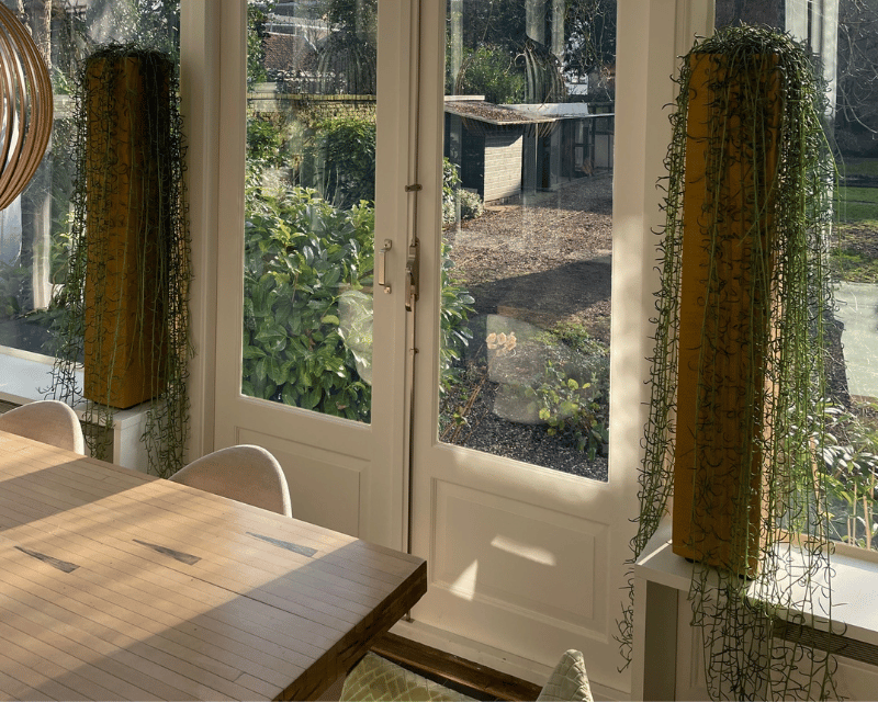 In deze volledig gerenoveerde villa aan het water realiseerden we een stijlvolle en onderhoudsarme plantenwand, subtiel geïntegreerd in een zeven meter lange maatwerkkastenwand. De wand is voorzien van een halfautomatisch irrigatiesysteem met een onzichtbaar ingebouwd waterreservoir. Dankzij dit systeem verzorgen wij het onderhoud slechts één keer per acht weken – het enige dat nodig is, is een stroompunt.